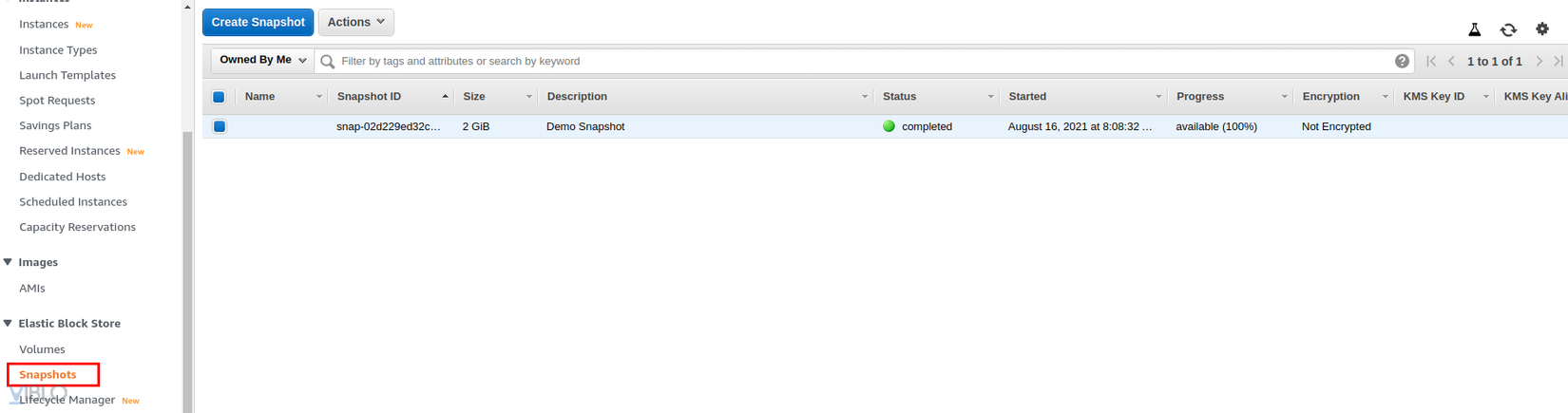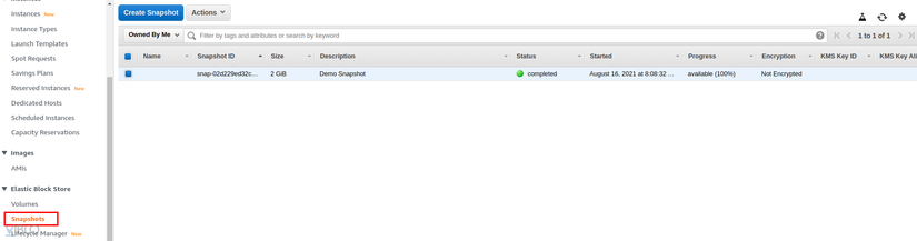 Qua tab Snapshot, lúc này Snapshot chỉ avaiable trong region, ko link tới AZ cụ thể nào.