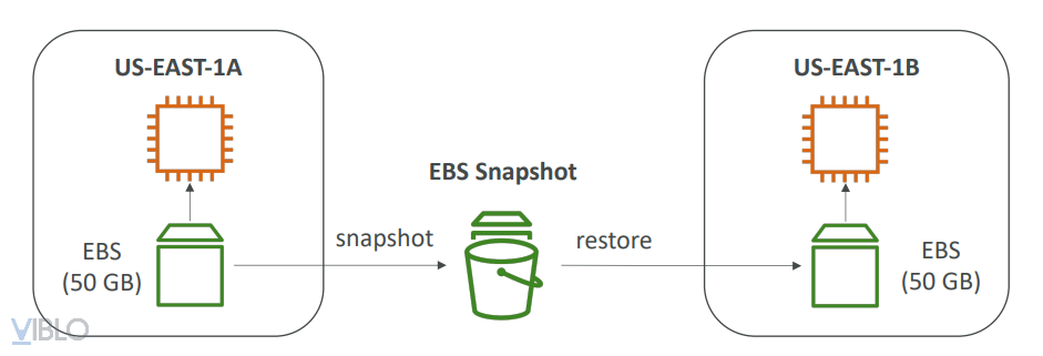 Snapshot có thể được sao chép từ AZ này sang AZ khác và tương tự đối với regions.