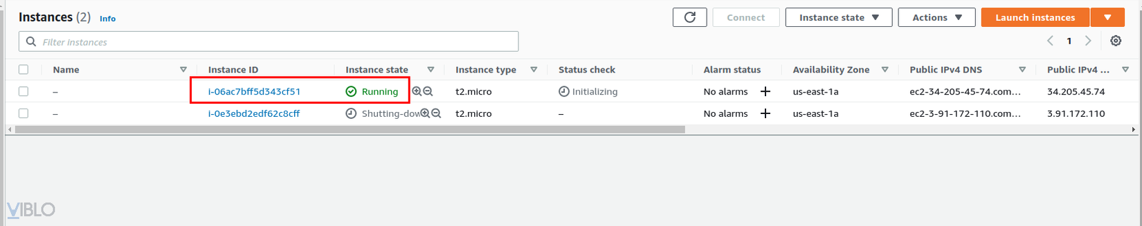 - Đầu tiên bạn cần có một EC2 instance. Nhấn vào xem instance đang running.