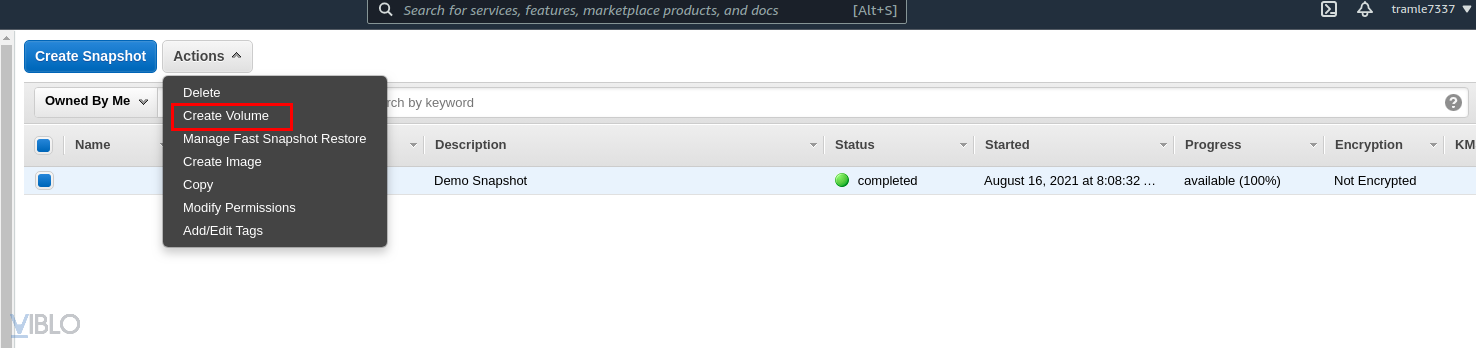 Và ta cũng có thể tạo volume từ snapshot này. Để mục đích move nó sang AZ khác.