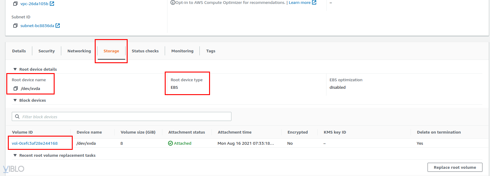 - Nhấn vào volume ID để xem root EBS của instance đó