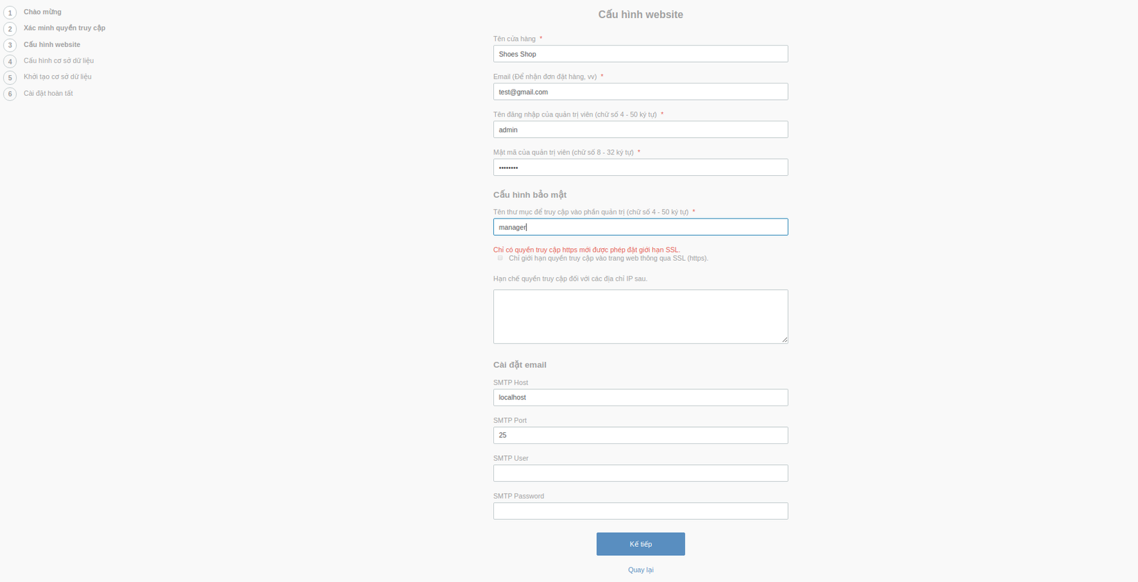 , còn ở phần tên thư mục để truy cập là tên của thư mục quản trị, mn đặt gì cũng dk. vd: manage thì url để truy cập vào admin thì sẽ là localhost:8000/manager. Sau đó nhấn kế tiếp
