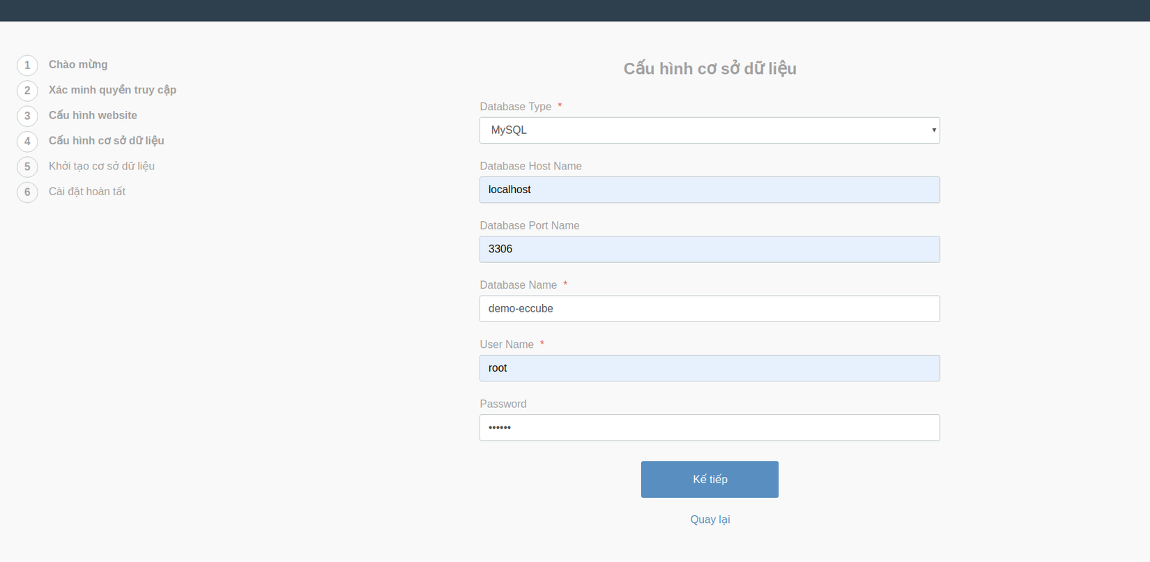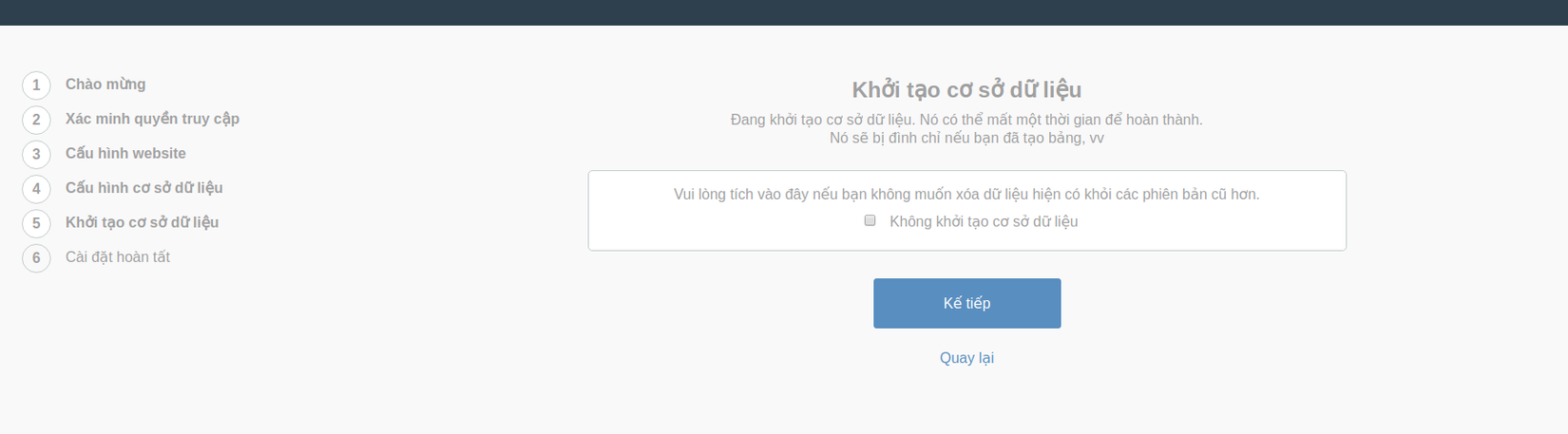 Đến đây mn nhấn kế tiếp để bắt đầu khởi tạo csdl