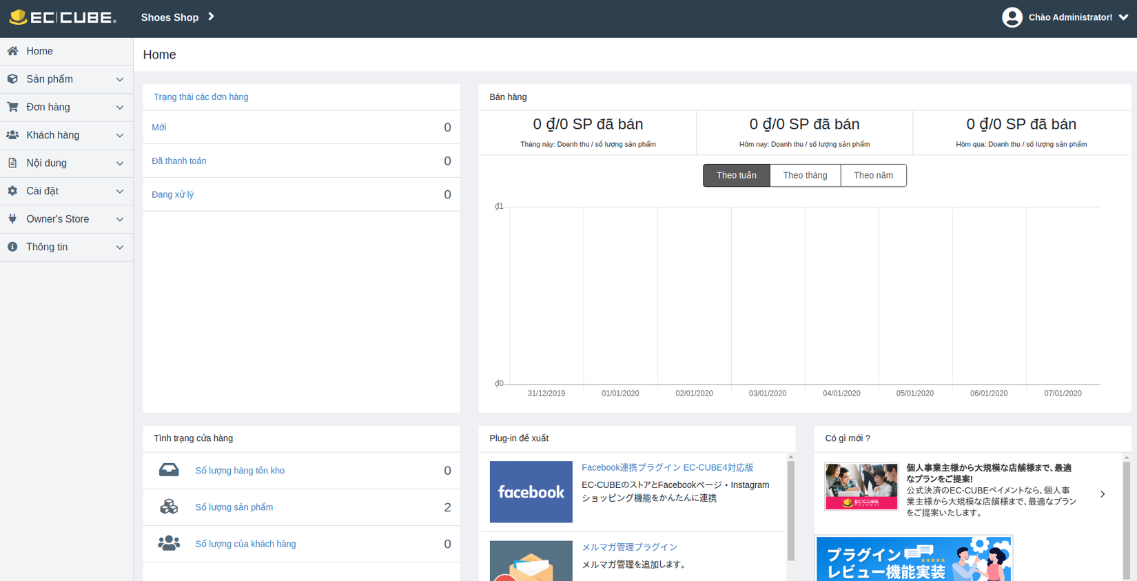 - EC-CUBE hỗ trợ khác nhiều chức năng như quản lí sản phẩm, đơn hàng, người dùng...