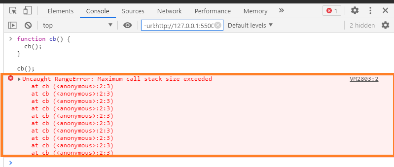 Có thể dễ dàng nhận ra cb() là một hàm đệ quy, và nó liên tục được đưa vào Call stack cho đến khi tràn ra khỏi Call stack.