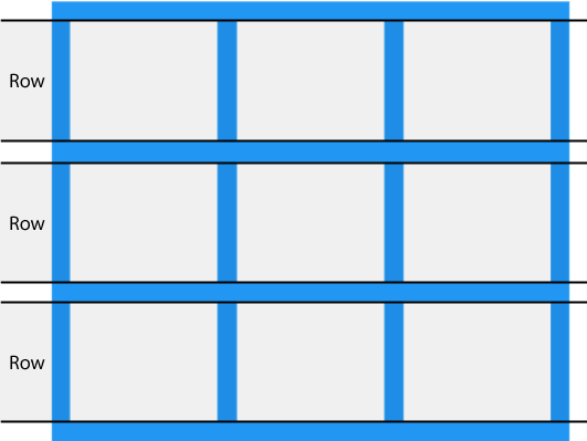Khoảng cách giữa các hàng và các cột được gọi là gaps.
