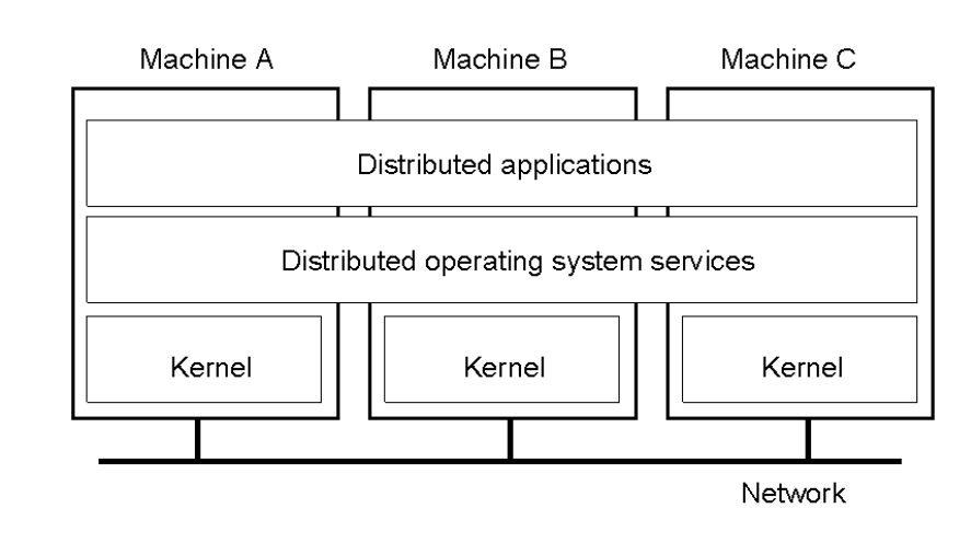- Là 1 hệ điều hành duy nhất được cài đặt trên hệ thống phần cứng của hệ phân tán