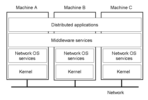 | Item | Distributed OS | Network OS | Middleware-based OS |