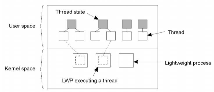 - 1 tiến trình nhẹ được gán với nhiều luồng