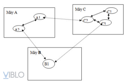 - Các đối tượng A1, A2 gọi các phương thức của nhau được gọi là triệu gọi phương thức cục bộ (local method invoke). Đây là cách lập trình hướng đối tượng truyền thống vẫn sử dụng, tương tự các đối tượng C1, C2, C3 là các đối tượng cục bộ.