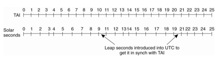 • Tuy nhiên, TAI lại có một vấn đề là cứ 86400TAIs sẽ có 3ms chậm hơn so với đồng hồ mặt trời.