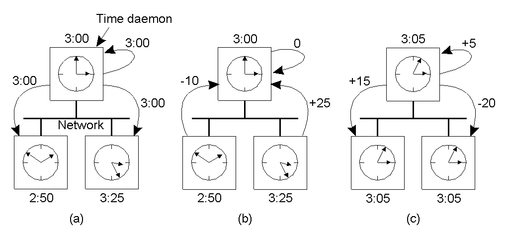 • Server tính khoảng thời gian mà các client so với thời gian chuẩn của server lúc đó và gửi cho các máy khách cách điều chỉnh thời gian cho phù hợp.