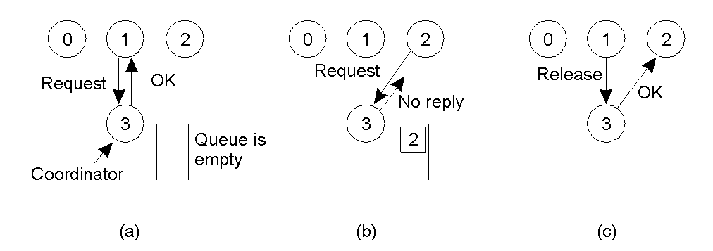 • Sự sắp xếp này dễ thực thi và chỉ yêu cầu 3 thông điệp cho mỗi lần sử dụng tài nguyên gồm: yêu cầu truy nhập tài nguyên, sự cho phép và giải phóng tài nguyên.
