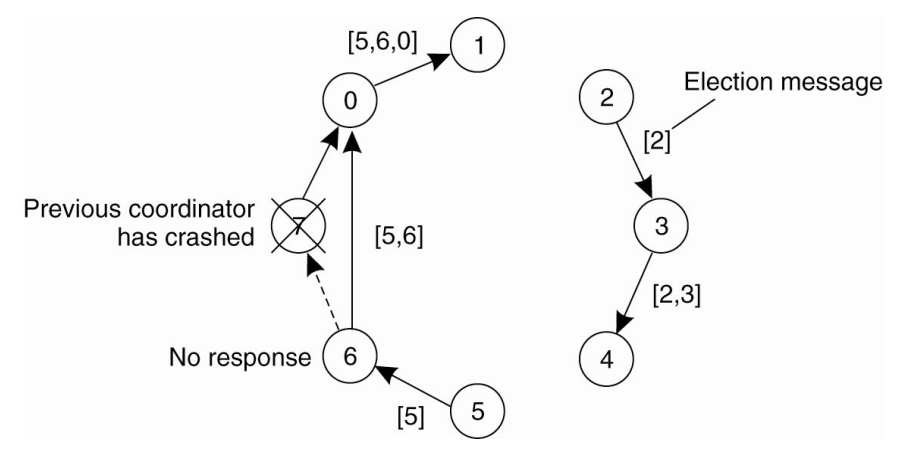 Giả sử tất cả các tiến trình được sắp xếp trên một vòng tròn logic, các tiến trình đều được đánh số và đều biết đến các tiến trình cạnh nó.