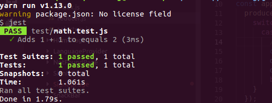 Sau đó chạy yarn test hoặc npm run test.