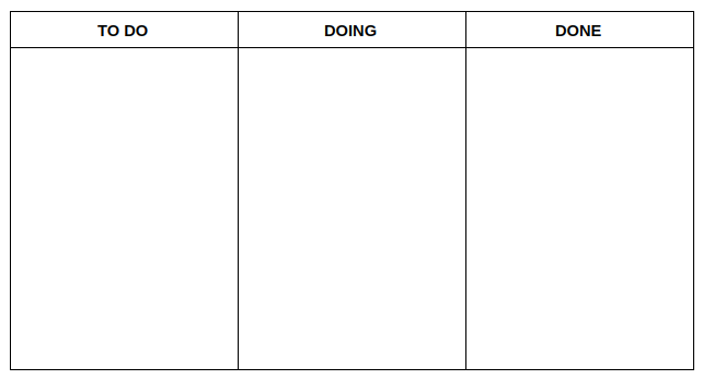 Sử dụng Kanban board để quản lí bài viết này. Chúng ta sẽ kẻ 1 bảng gồm 3 cột: TO DO, DOING và DONE