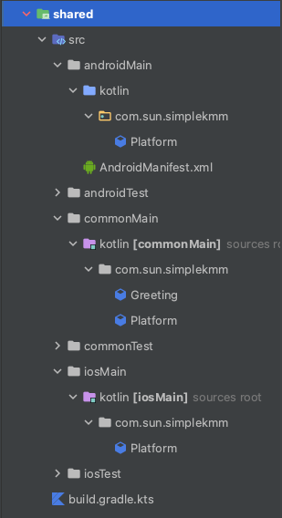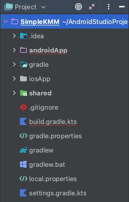 - Ta có thể thấy project bao gồm 2 Gradle modules: androidApp và shared cùng với iosApp là nơi chứa ios project