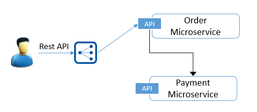 Service Order và Payment exposed các API để client hoặc các service khác gọi đến nó. Khi client call REST API request để thực hiện một Order. Order service nhận request xử lý business logic rồi gọi tới Payment Service qua API để thực hiện Payment. Mô hình trên là loại mô hình kết nối Point-To-Point, các service kết nối trực tiếp với nhau thông qua API end-point.