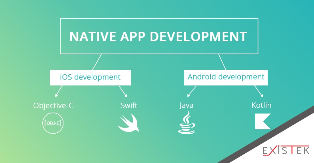Các Native app được tạo cho một nền tảng cụ thể là Android hoặc iOS, trong khi quá trình phát triển Hybrid app phụ thuộc vào chức năng đa nền tảng. Điều đó có nghĩa là, các Native app được xây dựng trên các ngôn ngữ lập trình chỉ có thể được hỗ trợ bởi một nền tảng nhất định. Java, Kotlin thường là các công nghệ được áp dụng để phát triển Android và Objective-C và Swift – cho iOS.