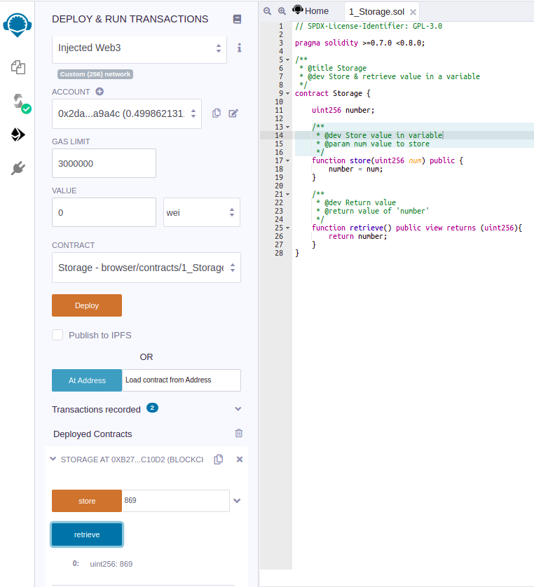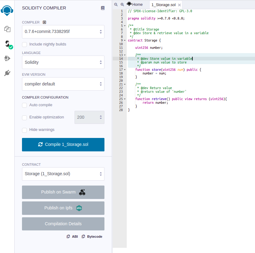 Bây giờ mình sẽ demo việc deploy một contract lên mạng testnet của Heco. Đầu tiên ta cần chuẩn bị 1 file code bằng solidity Storage.sol.