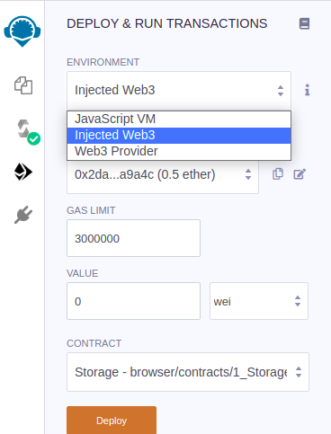 Bây giờ cần chuyển môi trường của Remix từ máy ảo của remix sang connect vào web3 của metamask
