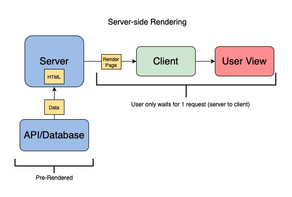 Với tất cả thông tin trên máy chủ, nó có thể hiển thị trước (pre-render) HTML của trang. Máy khách có thể gửi một yêu cầu đến máy chủ và nhận toàn bộ trang HTML thay vì yêu cầu từng thành phần riêng lẻ với client-side rendering.