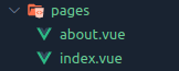 Lưu ý nếu trong các folder như about/ nói trên mà bạn vẫn muốn có thể truy cập vào url mặc định của folder chỉ là /about thì ta chỉ cần tạo thêm 1 file index.vue trong folder about/. Bạn có thể hiểu các file có tên là index sẽ đóng vai trò như file mặc định cho các path dạng [folder-name]/ hoặc thậm chí như url default của chúng ta là / ta cũng có file index.vue đặt ngay trong thư mục gốc là pages/: