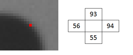 - Các con số trong các ô là giá trị pixel của các điểm ảnh lân cận điểm ảnh được đánh dấu màu đỏ.