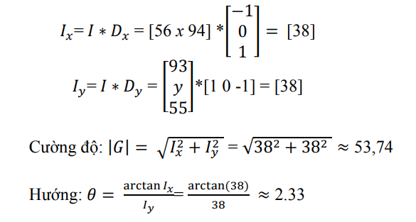 Chúng ta sẽ áp dụng các công thức trên để tính được gradient của điểm ảnh này: