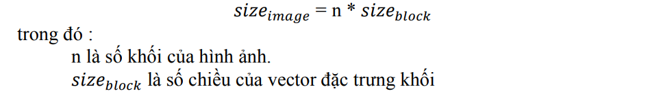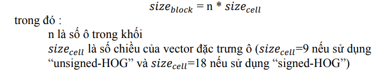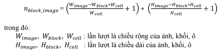 Sau khi tính toán đặc trưng ô, ta sẽ nối các vector đặc trưng ô để thu được vector đặc trưng khối. Số chiều vector đặc trưng khối tính theo công thức :