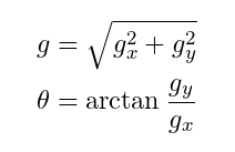 Khi đó, bạn có thể tính được Gradient bao gồm hai thành phần cường độ(Gradient Magnitude) và hướng(Gradient Derection) theo công thức (*):
