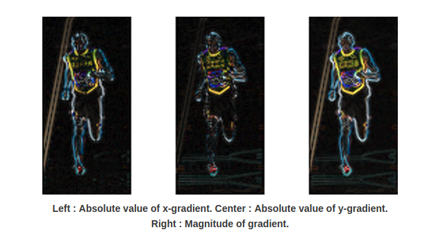 Đối với hình ảnh màu, gradient của ba kênh(red, green và blue) được đánh giá. Độ lớn của gradient tại một điểm ảnh là giá trị lớn nhất của cường độ gradient của ba kênh, và góc là góc tương ứng với gradient tối đa.