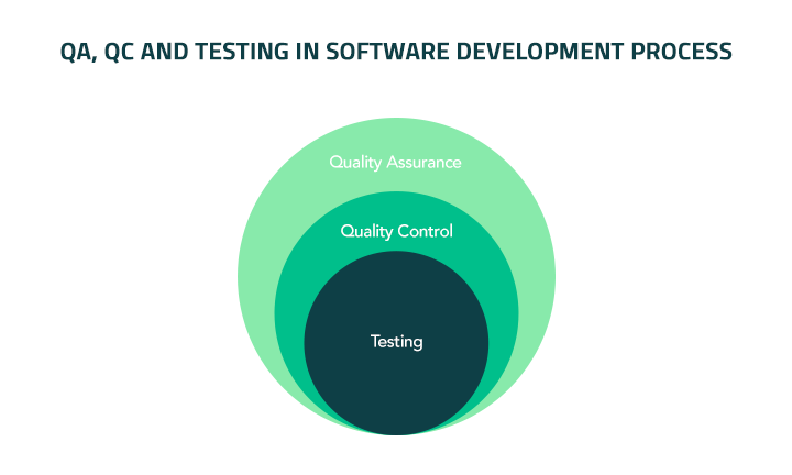 - QC sẽ thực thi các bước theo quy trình mà QA đề ra, QA giám sát, theo dõi và kiểm tra sự tuân thủ của QC, và có thể tiến hành chỉnh sửa cho phù hợp với tiến độ, ngân sách và trạng thái của dự án.