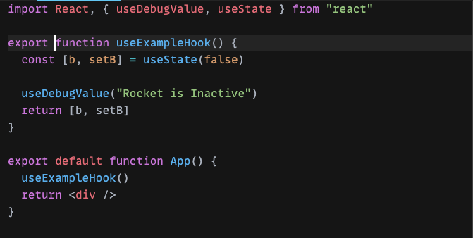 Ví dụ chúng ta có custom hook useExampleHook và không sử dụng useDebugValue như sau :
