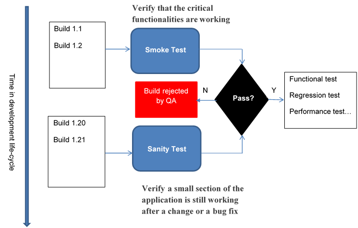 Sau thay đổi hoặc fix bug được thực hiện trong code, bản build là sẵn sàng cho tester. Tester sẽ thực hiện Sanity Testing trên những chức năng thay đổi thay vì thực hiện regression testing để tiết kiệm thời gian.