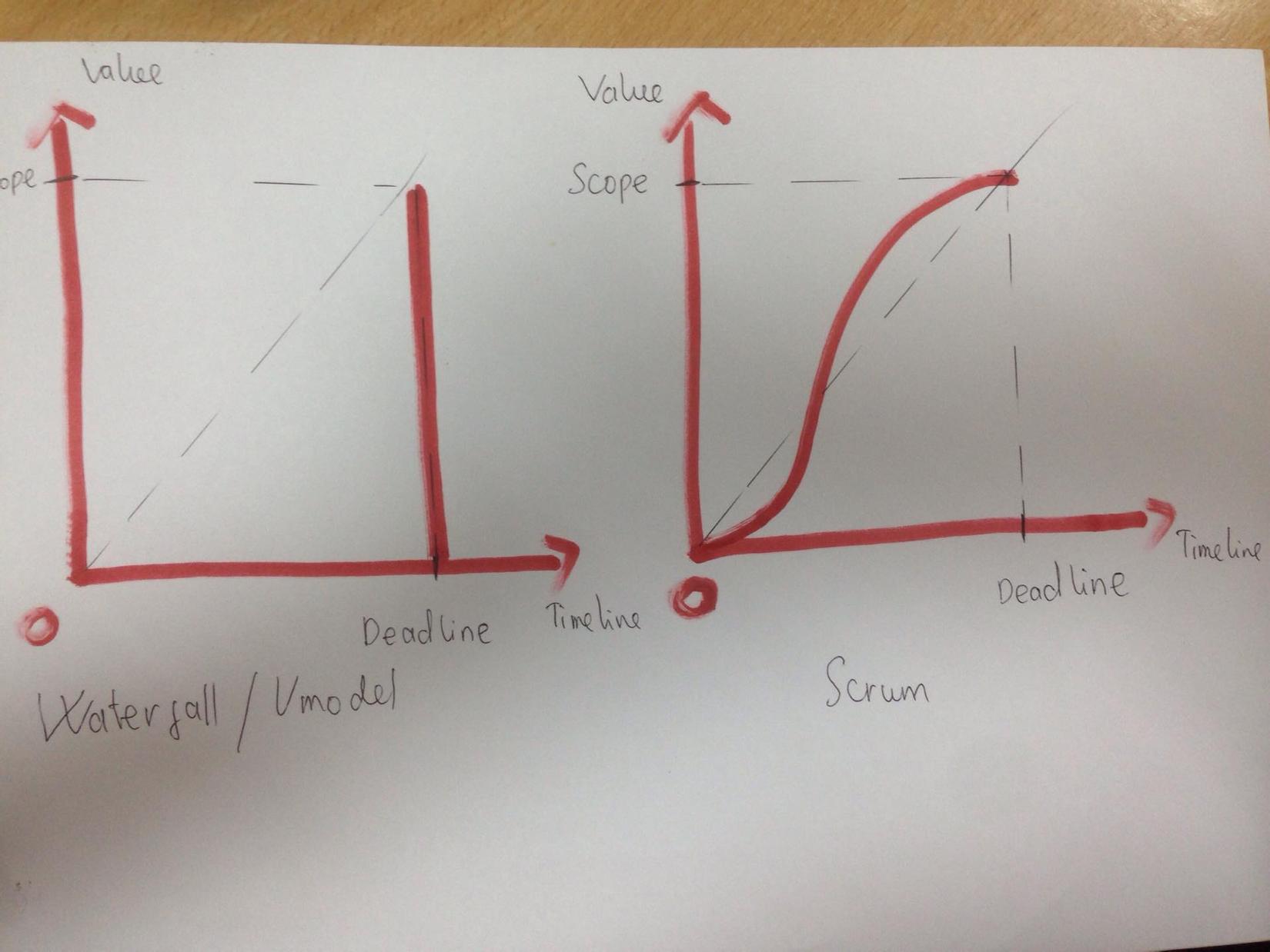 Nếu Waterfall hay V- model đưa toàn bộ sản phẩm vào phát triển cùng một lúc và sau khi kết thúc sẽ giao tới tay khách hàng một sản phẩm hoàn thiện về tất cả các chức năng thì Scrum lại chia nhỏ sản phẩm thành từng phần để đưa vào các giai đoạn phát triển. Mỗi sprint phía nhà phát triển sẽ chỉ triển khai một vài chức năng chính có độ ưu tiên cao của phần mềm. Sau đó sẽ demo và nhận feedback từ khách hàng cho những tính năng đã phát triển. Vậy ưu điểm của Scrum so với các mô hình truyền thống là gì