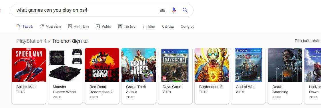 Với câu hỏi "what games can you play on ps4?" , Câu trả lời được hiển thị rất dễ dàng nhờ đã trực quan hóa dữ liệu