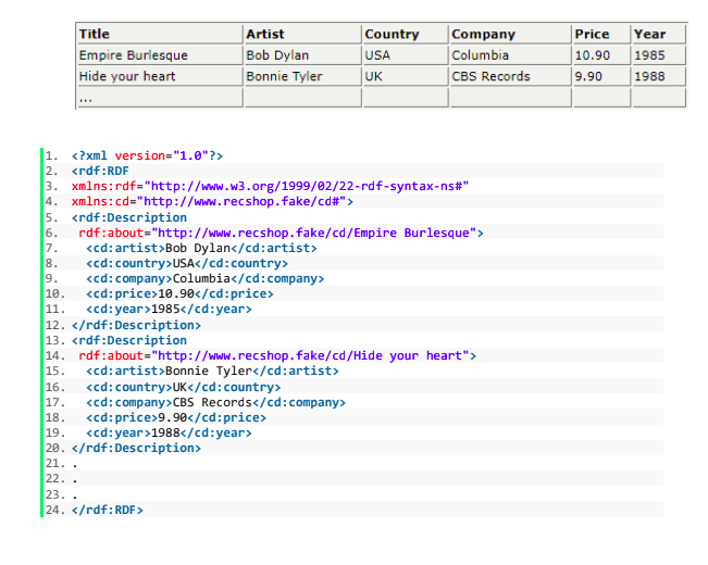 Dưới đây là ví dụ một tập Ontology về sách , được mô tả bằng ngôn ngữ RDF