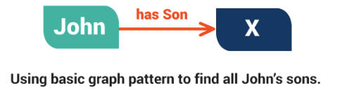 Ví dụ, mẫu ‘John’ (chủ ngữ) → ‘có con’ (vị ngữ) → X (bổ ngữ wilcard - ký tự đại diện) sẽ như là giải pháp cho từng bộ 3 trong đồ họa RDF mà khớp với chủ ngữ, khớp với vị ngữ và có bất kỳ bổ ngữ nào. Vì thế nếu John có 2 con trai – Bob và Michael, thì bộ ba ‘John’ → ‘có con’ → ‘Bob’ và ‘John’ → ‘có con’ → ‘Michael’ sẽ là các giải pháp cho truy vấn SPARQL.