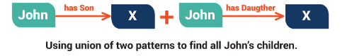 Truy vấn SPARQL cũng có thể trình bày một liên minh các mẫu đồ họa đan xen nhau. Bất kỳ giải pháp nào cho ít nhất 1 trong số các mẫu là một giải pháp của liên minh đó. Ví dụ liên minh các mẫu ‘John’ → ‘có con trai’ → X và ‘John’ → ‘có con gái’ → X sẽ như là những giải pháp cho tất cả các con trai của John và tất cả các con gái của John.