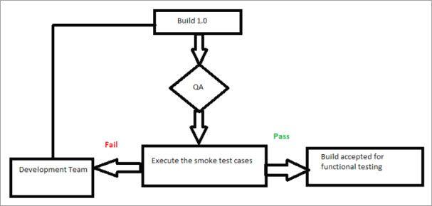 Sơ đồ dưới đây giải thích vòng đời của Smoke testing. Mỗi khi một bản build được release cho QA, vòng đời cơ bản là: