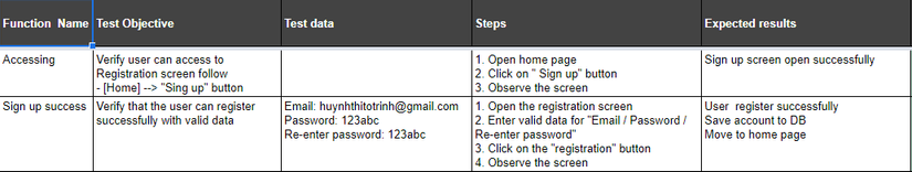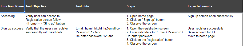- Cuối cùng click vào button đăng ký Thì kịch bản thử nghiệm ở đây như sau: