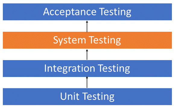 - System Testing liên quan đến việc kiểm tra và theo dõi mã code của phần mềm. Kiểm tra các ứng dụng tích hợp đầy đủ bao gồm các thiết bị ngoại vi bên ngoài nhằm kiểm tra cách các thành phần tương tác với nhau và với toàn bộ hệ thống. Đây cũng được gọi là kịch bản thử nghiệm End to End.