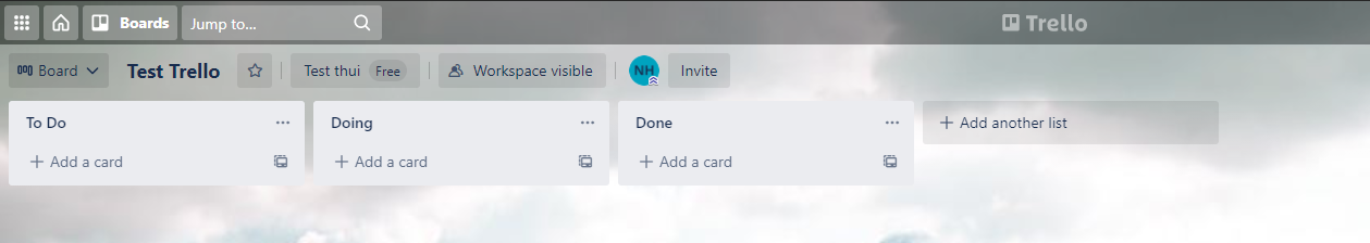 Khi tạo tài khoản xong Trello sẽ hỏi bạn có muốn tạo bảng hay không? Đối với phần hướng dẫn bao đầu, Trello sẽ tạo giúp cho bạn 3 list cơ bản nhất: Todo - Doing - Done
