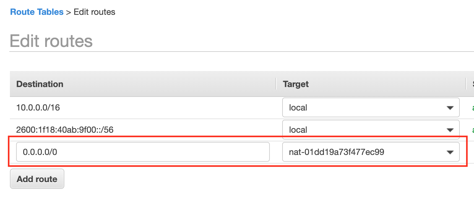 Route trên có nghĩa là mọi kết nối đến Internet (0.0.0.0/0 là toàn bộ IPv4) trong privateA sẽ được điều hướng qua NAT-gateway-A