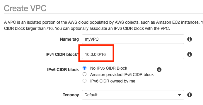 VPCvà chọn dịch vụ, điền các thông tin, IPv4 CIDR điền là10.0.0.0/16