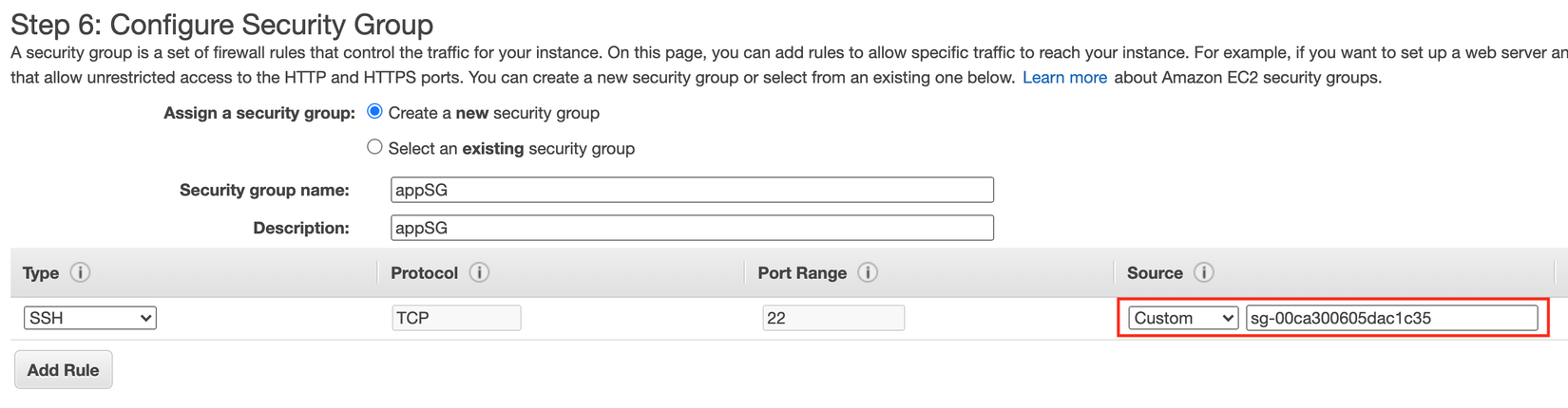 Trong phần Security group, tạo mới, SG này sẽ được dùng để gắn vào app server ở bước sau