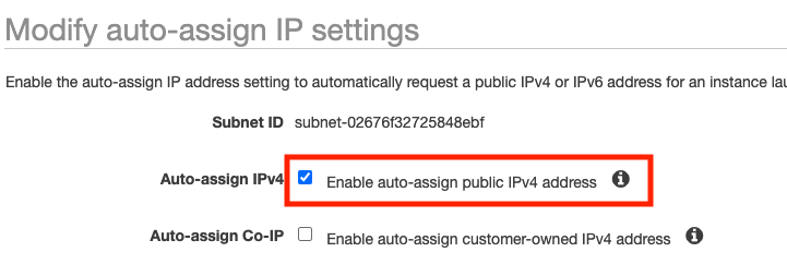 - Assign public IPv4 address cho subnet publicA, publicB, publicC: Lần lượt click vào từng subnet, click Actions > Modify auto-assign IP settings.