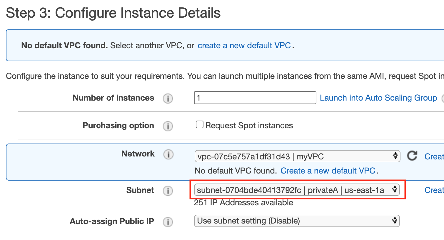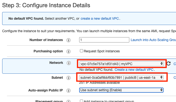 Trong phần chọn network, chọn đến VPC đã tạo từ trước và subnet là publicB