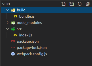webpackđể bundle ra file output, đây là cấu trúc thuc mục khi mà mình thực hiện các lệnh trên